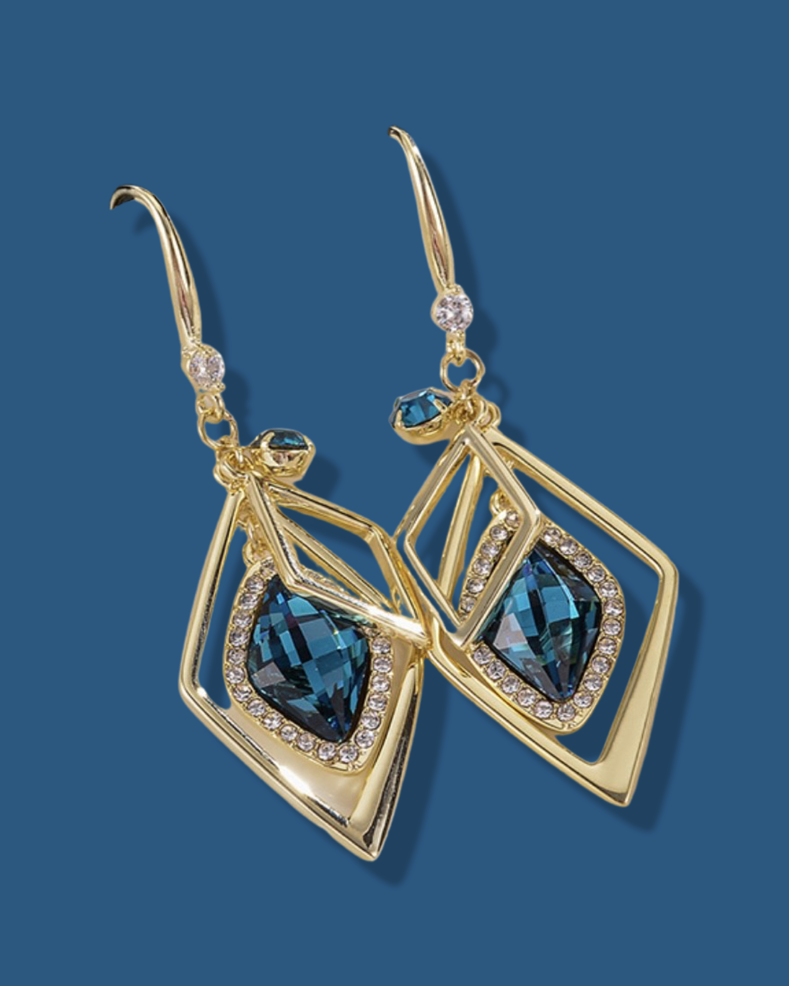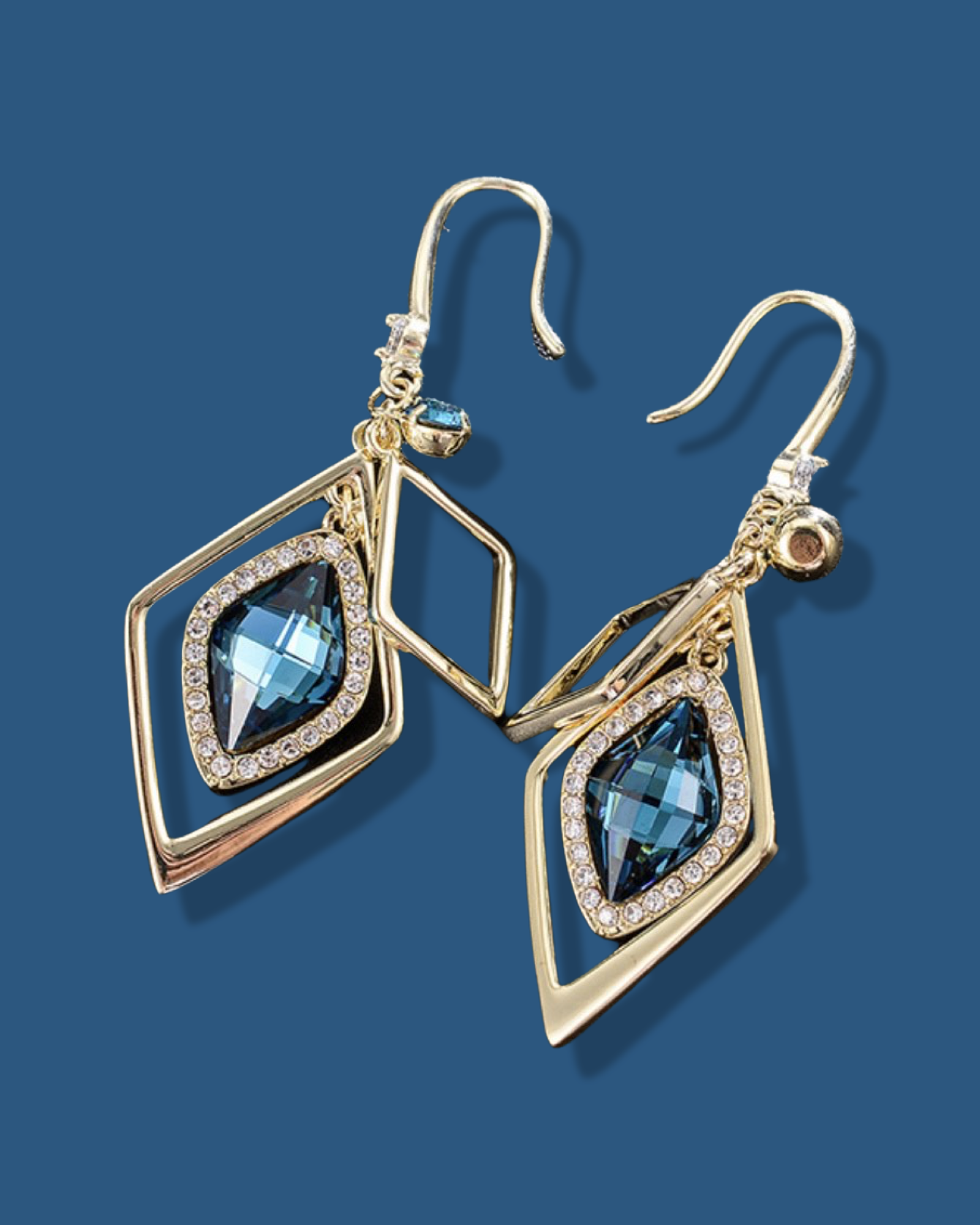 Blue Diamond Shaped Earrings